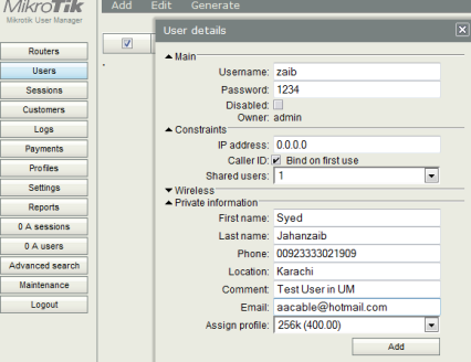 شرح خادم Mikrotik PPPoE مع نظام إدارة الفواتير المدفوعة مسبقا User Manager