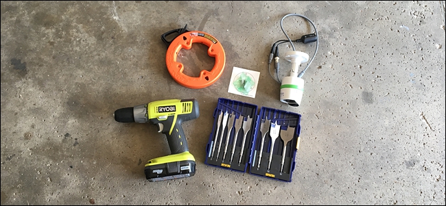 ستحتاج على الأرجح لشريط السمك الخاص بك مرة أخرى ، بالإضافة إلى المثقاب الكهربائي الخاص بك لحفر الثقوب عبر الجدران أو السقوف.