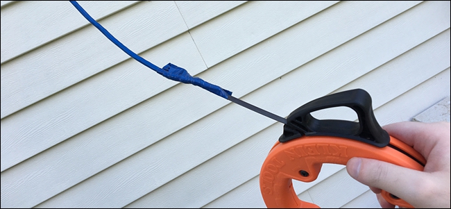 بأستخدام شريط السمك أسحب الكبلات من خلال جميع الجدران والأسقف ، وقد ينتهي بك الأمر بتوصيل الكبلات بشريط الأسماك ، وسحبها ، وإزالتها ، وتكرار العملية عدة مرات عبر جدران متعددة قبل أن تصل الأسلاك في النهاية إلى وجهتها. .