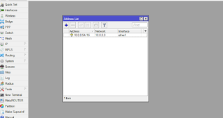 2. انقر فوق Ip ، وانقر فوق العنوان ، وانقر فوق علامة الجمع ، وقم بتعيين عنوان IP ، واختر واجهة ether1 ، ثم قم بالنقر على تطبيق وموافق.