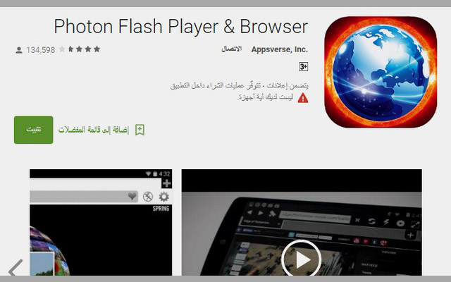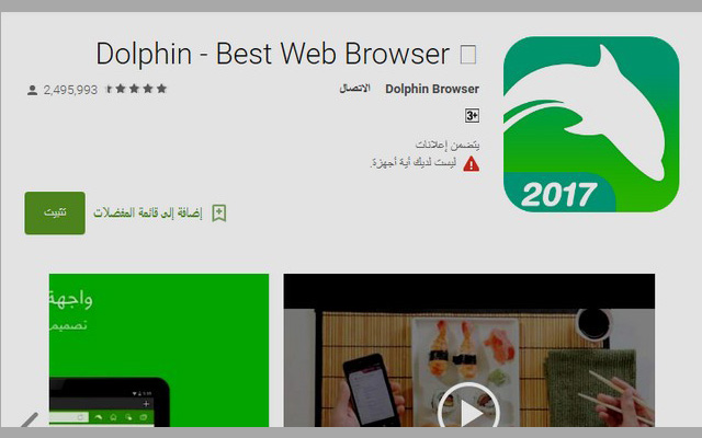ويمكنك تحميل وتثبيت أحدث متصفح دولفين من متجر جوجل بلاي ولكي تستطيع من عرض محتوى فلاش في المتصفح