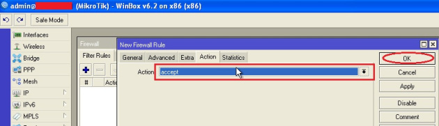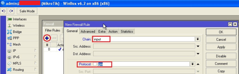 من علامة التبويب “Filter Rules” ، أضف Rule الجديدة. تعيين chain input, لإدخال protocol tcp و DST. المنفذ 1723: