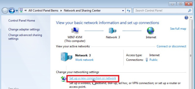 من “لوحة التحكم” ، حدد “مركز الشبكة والمشاركة” ثم اختر “إعداد اتصال أو شبكة جديدة”:
