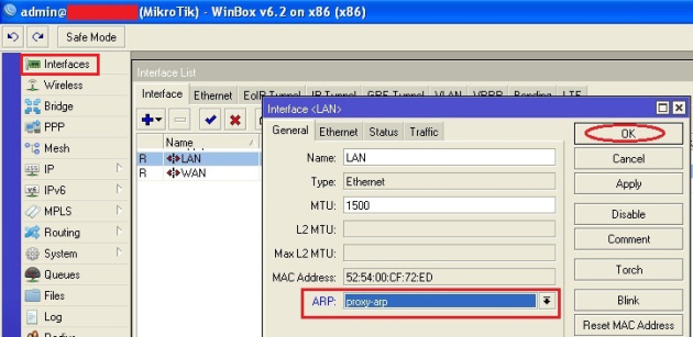 ملاحظة: في بعض الأحيان ، هناك مشكلة في الوصول إلى المضيفين الآخرين على الشبكة المحلية من VPN. الحل لهذه المشكلة هو إعداد proxy-arp على الواجهة المحلية التي تتصل بـ LAN الخاص بك: