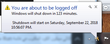 وبعد الضغط على OK فسوف تظهر رساله تخبرك بأن جهاز الكمبيوتر سوف يتم إغلاقه بعد مرور الوقت الذي تم تحديده
