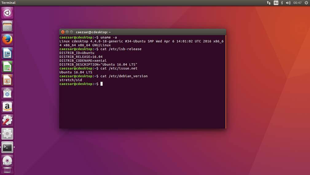 9. بعد إعادة التشغيل ، يجب أن يقوم النظام بالتمهيد لأحدث توزيعات أوبونتو التي تمت ترقيتها ، 16.04. للتحقق من إصدار التوزيع الخاص بك ، اكتب الأوامر الواردة أدناه على الجهاز.