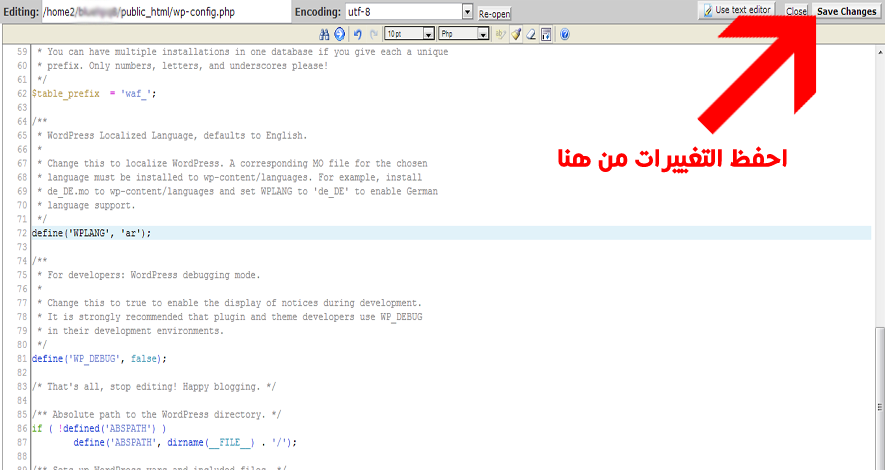 الآن بعد حفظك للملف , انتهيت عملية تغيير اللغة لوورد بريس … الآن كل ماعليك فعله هو التوجه إلى لوحة تحكم الوورد بريس في موقعك و التحكم و إدارة موقعك باللغة العربية!