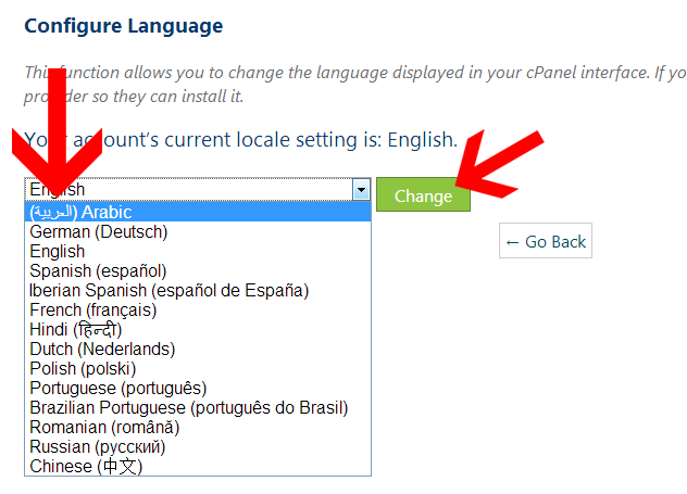 وبهذي الطريقة ستتغير لغة لوحة تحكم الcpanel