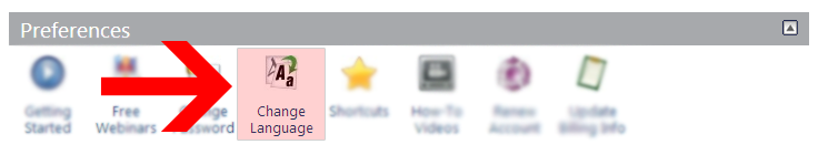 طبعاً cPanel تدعم اللغة العربية بشكل مقبول. لتغيير اللغة , توجه إلى قائمة Prefernces ثم اختر Change Language كما في الصورة التالية :