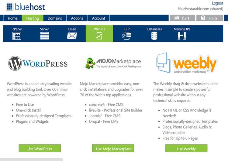 شرح لوحة تحكم bluehost وتنصيب الووردبريس :