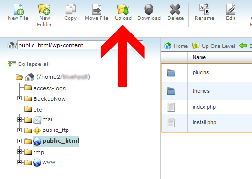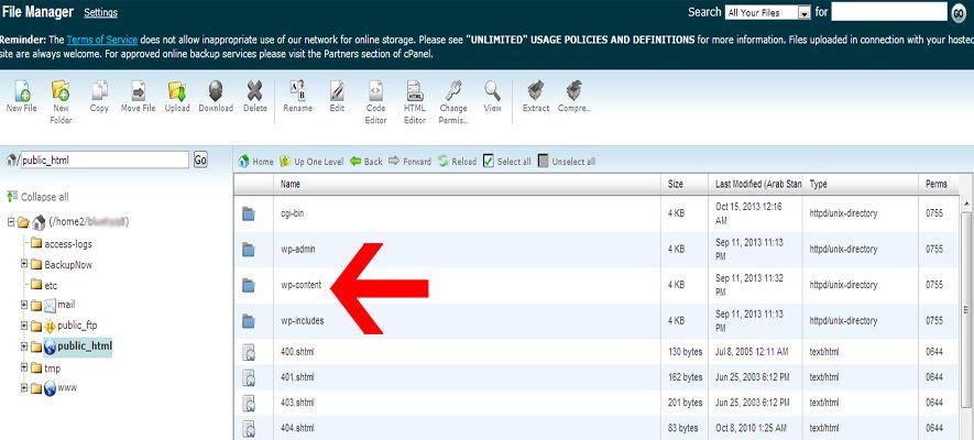 الآن ستفتح لك نافذة خاصة بإدارة الملفات في موقعك , الآن قم بالدخول على المجلد wp-content بالنقر عليه مرتين :