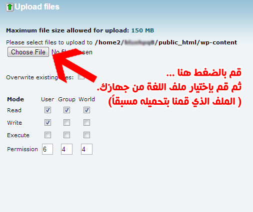 بعد ذلك سنقوم برفع ملف اللغة الذي سبق و أن قمنا بتحميله.