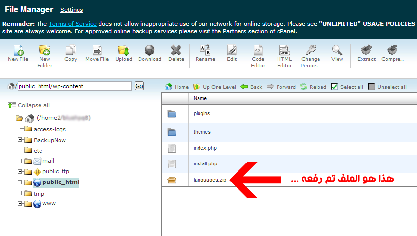 الآن قمنا برفع ملفات اللغة بنجاح … الآن سنقوم بالخطوة الأخيرة قبل الإنتهاء.