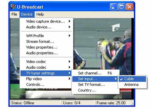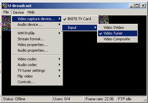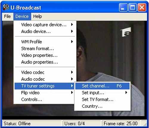 في الخطوة الخامسة نقوم بالضغط على F6 او نتوجه إلى Device > TV Tuner setting > Set channe من اجل تحديد المحطة التى نريد بثها إلى الشبكة وهذه صورة للتوضيح :