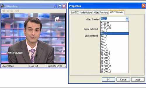 الخطوة الثالثة سوف تكون من أجل تحديد معيار الفيديو الذي سوف تبثه PAL or SECAN or NTSC وذلك يتم من خلال التوجه إلى VIDEO PROPERTIES وبعدها نختار بحسب المعيار المستخدم في القناة وهذه صورة للتوضيح :