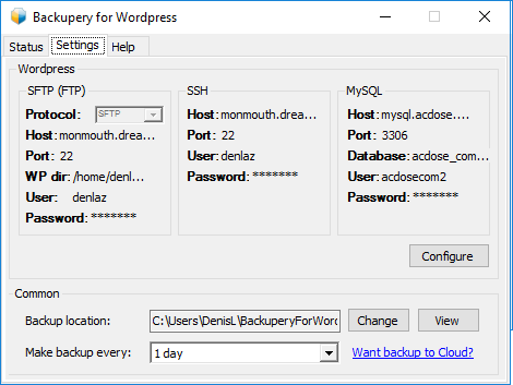 Backupery for WordPress is an application to make regular automatic backups of WordPress websities to the destination of your choice: directory on your computer, external disk drive, NAS (Network Attached Storage), USB stick, network share, cloud storage services like Google Drive, Dropbox, Microsoft OneDrive, etc.