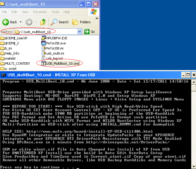 ستحتاج إلى اسم أداة خاص USB_MULTIBOOT الذي سينسخ xp cd إلى usb ويمكّن Usb من بدء إعداد Windows XP.