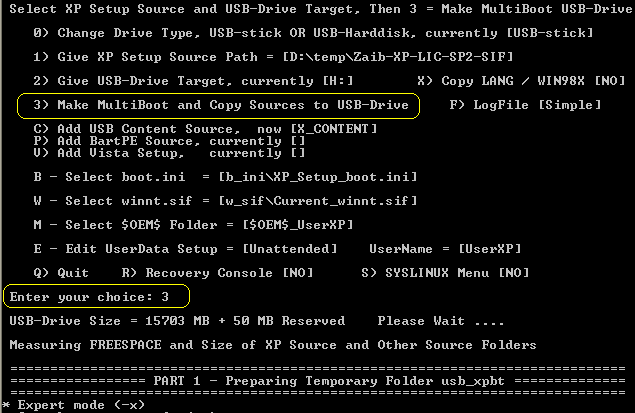 الآن حدد الخيار # 3 [جعل MultiBoot ومصدر النسخ] لبدء عملية نسخ الإعداد.