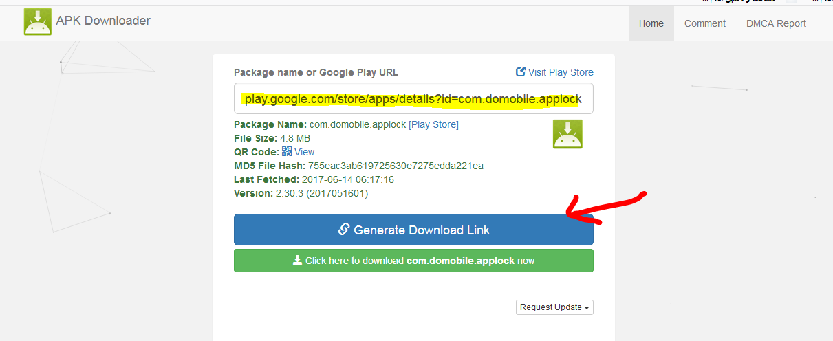 عند الضغط على رز Generate Download Link ستلاحظ ظهور معلومات التطبيق أي حجم الملف وتاريخ اصداره