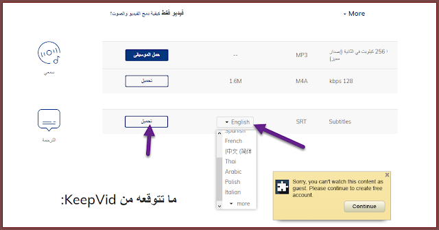 سوف تقوم بتحديد اللغة المدعومة في الفيديو ثم تقوم بتحميلها .