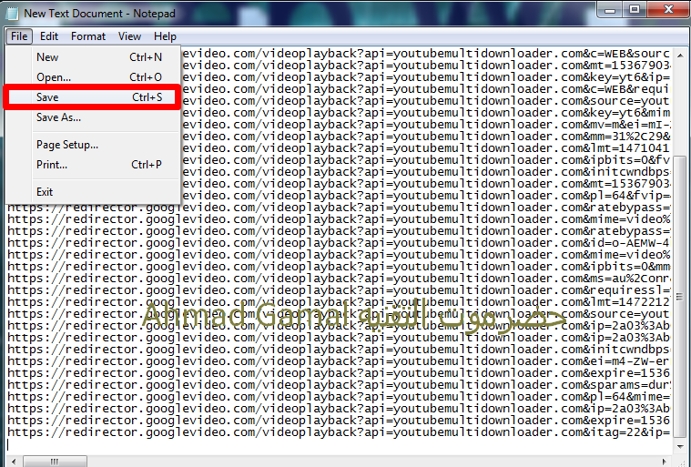 سادسا:- نقوم بإنشاء ملف نصي على الكمبيوتر ثم القيام بلصق جميع روابط الفيديوهات به والحفظ