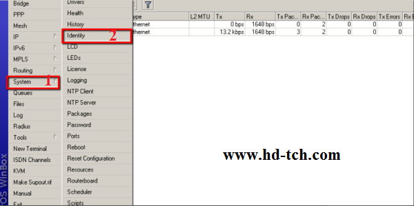 لكى نغير اسم الجهاز الخاص بنا ونميزه عن باقى اجهزة الشبكة نقوم بالذهاب الى قائمة System ثم نختار Identity.