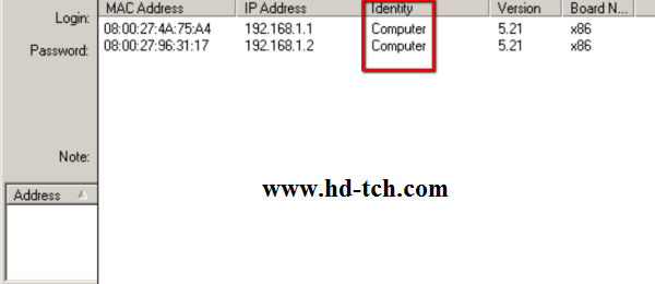 بعد ذلك نقوم باغلاق برنامج الون بوكس Winbox ثم نقوم باعادة تشغيله من جديد فنلاحظ تغير الاسم نرى ان الاسم الجديد ظهر لدينا (Computer) وبعدها نختار المستخدم المراد الدخول باسمه وندخل.
