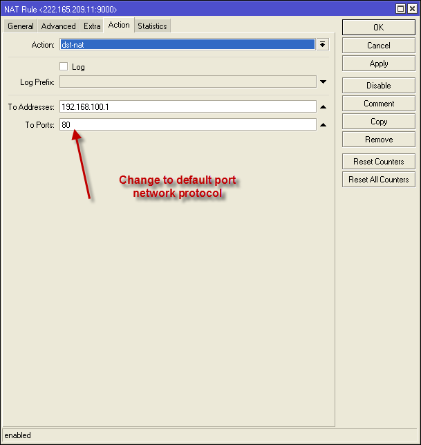 Action= dst-nat