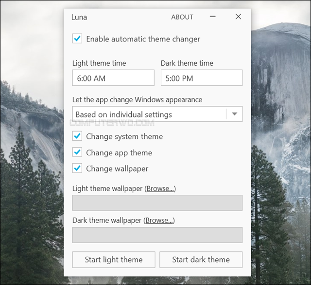 برنامج Luna المجاني يتيح لك جدولة التبديل بين الوضع المُظلم والوضع العادي (الساطع) في ويندوز 10.