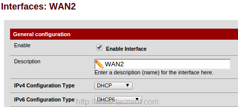 انقر مرة أخرى على interface واختر OPT1 وتمكين enable interface لتغيير الوصف من OPT1 إلى WAN2.