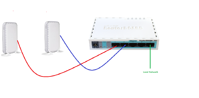 دمج خطين مختلفين في السرعة في سيرفر الميكروتك وموازنة التحميل بنتهما