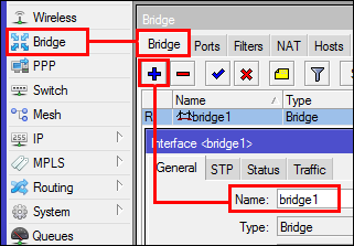 انتقل إلى قائمة Bridge ، ثم انقر فوق الزر + (إضافة). اكتب اسم الجسر كما يحلو لك :