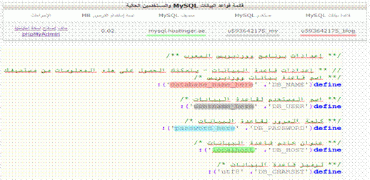 4- قم بإدخال التعديلات اللازمة على عن طريق ) قواعد البيانات التي قمت بإنشائها وحفظها قبل ذلك) بالنسبة لكلمة السر فهي نفسها التي استخدمتها في إنشاء قواعد البيانات .
