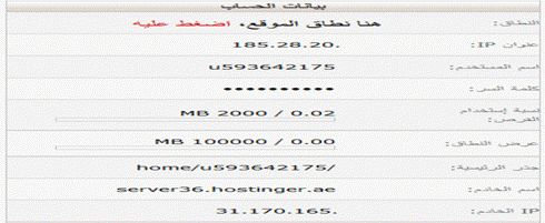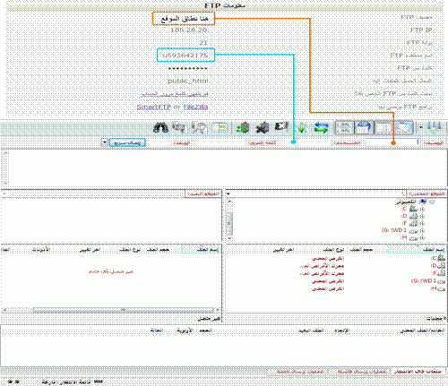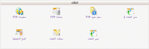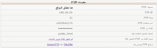 6- قم بالرجوع إى الصفحة الخاصة بالإعدادات في موقع الاستضافة، واذهب إلى قلب الصفحة حيث “الملفات”، وقم بالنقر على “معلومات FTP أقصى يسار الصفحة