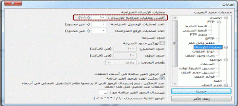 10- ستفتح لك صفحة بها قائمة جانبية، قم بالنقر على “عمليات الإرسال” ثم قم بتعديل خيار”أقصى عمليات متزامنة للإرسال” إلى 10)