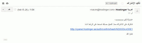 5- ستظهر لك صفحة تأكيد الاشتراك قم بالنقر على الرابط الموجود بها، كما بالصورة التالية .
