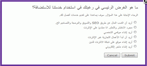 9- ستصلك بعد ذلك رسالة تخبرك بمجموعة خيارات لسبب إنشائك التدوينة أو الموقع، ستختار ما تريد.