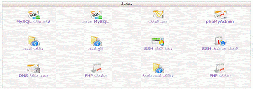 10- بعد ذلك تصل إلى صفحة الإعدادات انزل إلى أدنى الصفحة حيث الخيارات المتقدمة، وقم بالنقر على “قواعد بياناتك” MySQLمن الزاوية اليسرى بأعلى الصفحة كما هو موضح بالصورة: