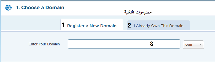 - أختر Register a New Domain اذا لم يكن لديك دومين محجوز من سابق