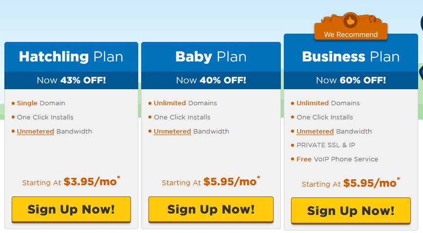 بعد التوجة لموقع الاستضافة اختر الخطة كما بالصورة التالية :