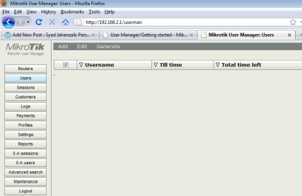 افتح متصفح الويب الخاص بك وأكتب http://10.0.0.1/userman او بحسب عنوان الـ IP الخاص بك للدخول الى مدير المستخدمين اليوزر منجر .