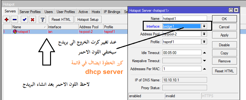 ندخل علي الهوتسبوت ونغير كارت الخروج الي bridge وكذلك ال dgcp server :