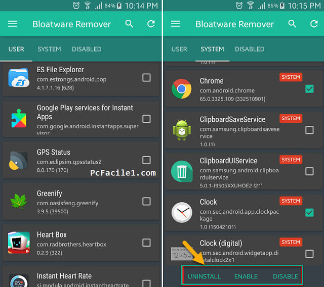 Bloatware Remover هو تطبيق جديد يساعدك على حذف تطبيقات النظام التي تأتي مع الهاتف افتراضيا بالإضافة إلى التطبيقات الأخرى أو تعطيلها .