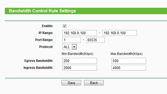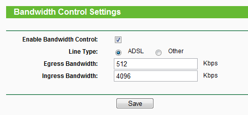 الخطوة 8: قم بتمكين Bandwidth Control وانقر فوق الزر حفظ في Bandwidth Control Settings ليصبح ساري المفعول.