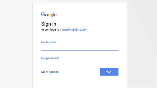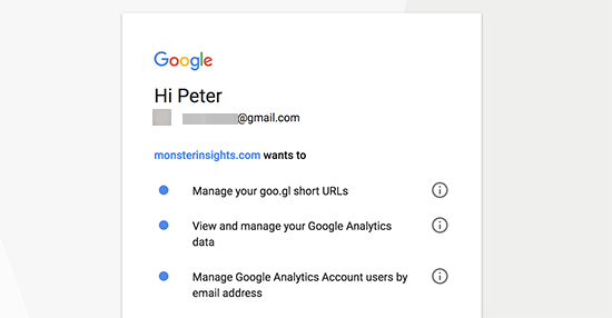 سيطلب منك الآن السماح لـ MonsterInsights بالوصول إلى حساب Google Analytics الخاص بك.