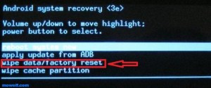 - 3 الان ستظهر لك شاشة الريكفري عندها اترك جميع الازرار واستخدم زر الصوت للوصول الى الخيار wipe data/factory reset
