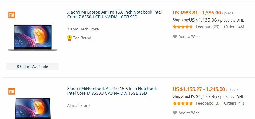 عند التوجة الى قسم اللابتوب Laptop ستظهر لنا منتجات كثيرة وامام كل منتج اسعارة واسعار الشحن له :