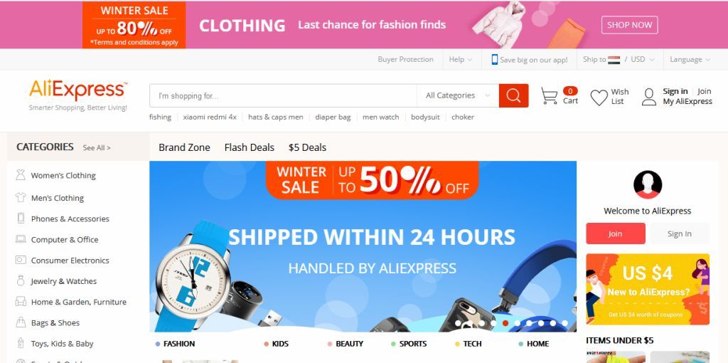 دعنا نلقي نظرا على اهم المواقع العالمية التي تقدم منتجات باسعار رخيصة جدا مثل موقع AliExpress الغني عن التعريف في هذا المجال .