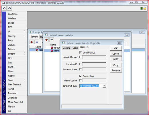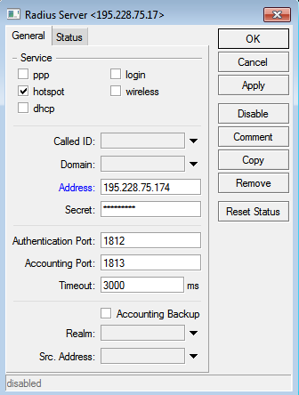 انقر فوق Services > Hotspot ، أدخل عنوان radius : radius.hotspotsystem.com ، كلمة السر: hotsys123