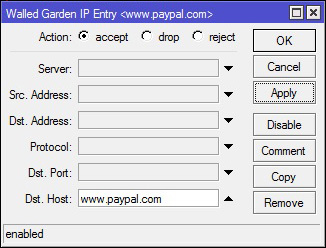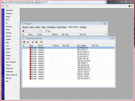 ثم في القسم IP> HotSpot> Walled Garden> IP List أضف عناوين IP التالية إلى Dst. مضيف:
